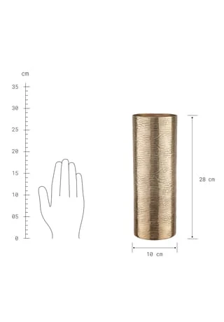 Die Aureo Vase aus Aluminium ist allen gewidmet, die sich an satten Goldtönen in ihrem Zuhause gar nicht sattsehen können. Seine strukturierte, leicht unebene Oberfläche sorgt für eine individuelle Optik und macht dieses schimmernde Deko-Objekt zum Hingucker. Passendes Tablett erhältlich, ideal zum Kombinieren.