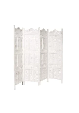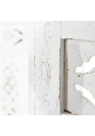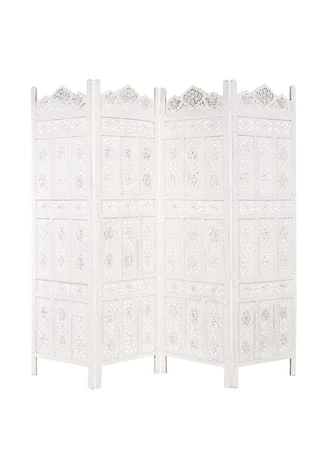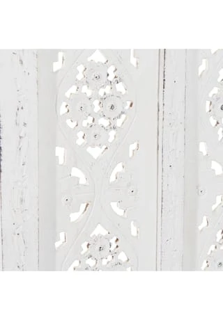 Als stamme er aus einer spanischen Finca, einer italienischen Villa oder einer portugiesischen Posada: Unser weißer Estella-Paravent mit femininen Ornamenten versehen, präsentiert sich charmant nostalgisch und aufwändig gearbeitet. Mit Liebe für das Detail. Denn er wurde von Hand gefertigt und bemalt. Ob als Raumteiler, als Sichtschutz oder Dekoelement: Der Paravent im Vintage-Look ist vielseitig nutzbar und weist deutliche Gebrauchsspuren auf.