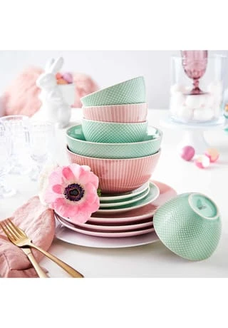 Mit dieser stillvollen Schale in Mint aus Steinzeug setzen Sie Snacks, Suppen oder Beilagensalate auf Ihren gedeckten Tisch gekonnt in Szene. Die große Schale der Hanami-Serie in zarten Pastelltönen ist ein echter Hingucker, der in unterschiedlichen Farben mit anderen Teilen kombiniert werden kann.