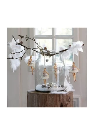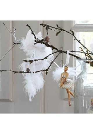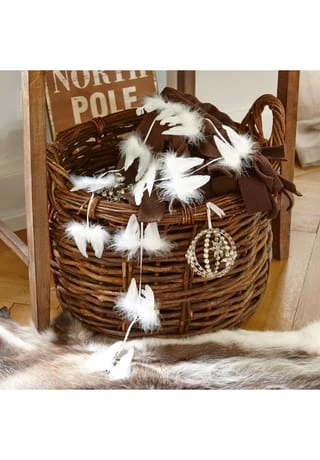 Girlande mit Engelsflügeln aus zarten Gänsefedern. Diese ca. 120 Zentimeter lange Girlande aus zarten Gänsefedern ist bestückt mit Flügelpaaren Bestens geeignet für vielfältige Dekorationsideen. Ob als Baumschmuck, gewunden um eine Hängelampe oder die Gardinenstange der Scheibengardine: Die Girlande fügt sich ganz natürlich in eine Einrichtung im Landhaus- oder Shabby-Chic, in ein klassisches Ambiente und integriert sich sogar in eine moderne Möblierung – hier sorgt der Kontrast für einen besonders schönen Effekt mit Hingucker-Garantie.