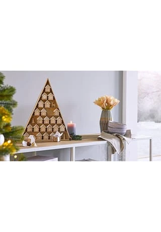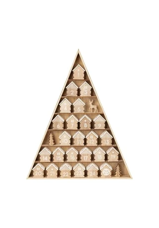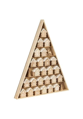 Schlicht gehaltener Adventskalender aus naturbelassenem Sperrholz. Die 24 nummerierten kleinen Häuschen lassen sich wie Schubladen herausziehen und individuell befüllen. Der Weihnachtskalender kann jedes Jahr wiederverwendet werden.