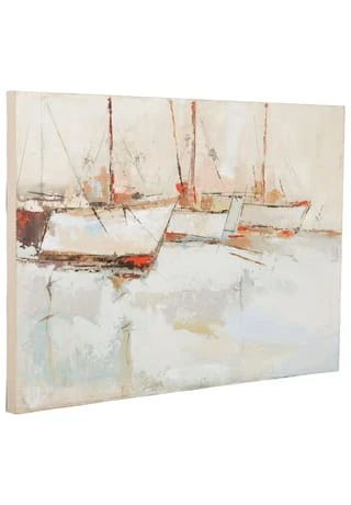 Tolles Leinwandbild mit maritimem Motiv. Die Segelboote lassen an Meer und Möwen denken und vermitteln Urlaubsstimmung. Das Bild im Querformat wurde mit Arcrylfarbe auf Leinwand handgemalt und ist ein Unikat.